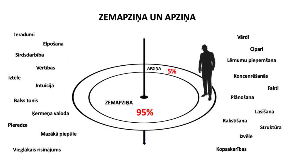 Apziņa un zemapziņa – prāta darbības 2 līmeņi.