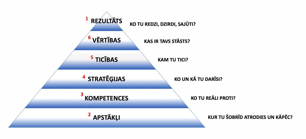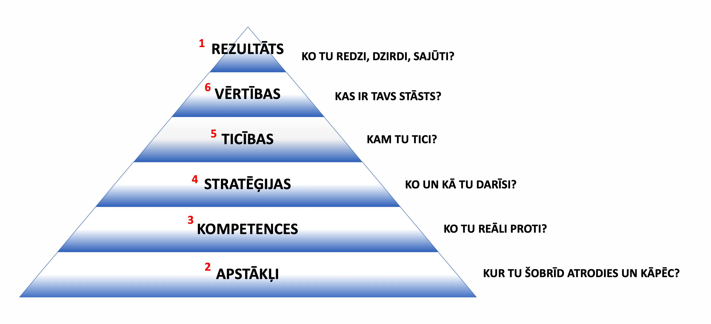 Sauc kā gribi. Tās visas ir emocijas, taču tikai ar mērķi var reāli strādāt. Sasniegt var tikai mērķi. Sapņus un fantāzijas no mērķa atšķir stratēģija un konkrēts aktivitāšu plāns. Jaudīgākā mērķu sasniegšanas stratēģija ir jau pazīstamais Reverse Engeneering un Roberta Diltsa radītā loģisko apziņas līmeņu piramīda.